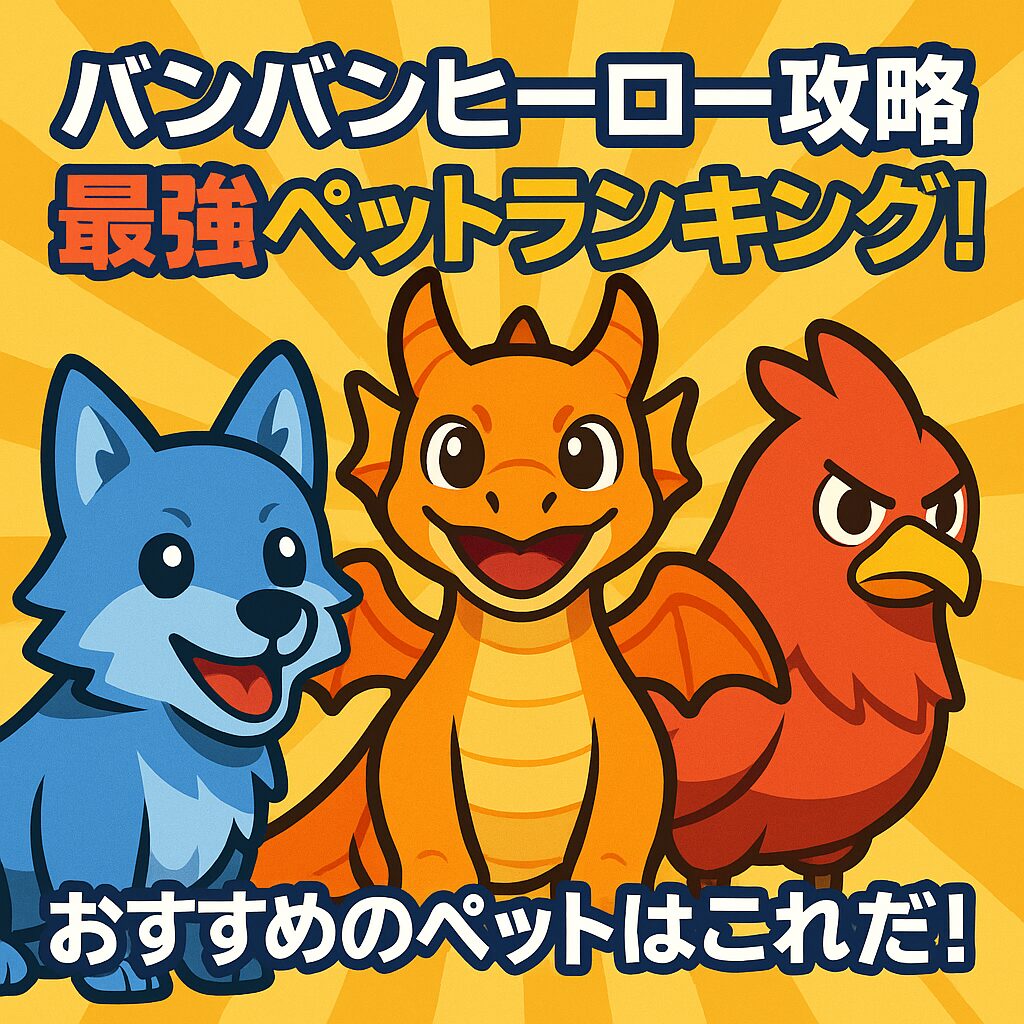 「バンバンヒーロー」でキャラと装備を整えたら、次に注目すべきなのが“ペット”。ペットは単なるおまけではなく、戦力や安定性を大きく左右する“強化要素”です。どのペットを選ぶかで序盤〜中盤、さらにボス戦での難易度がガラッと変わることも。この記事... -