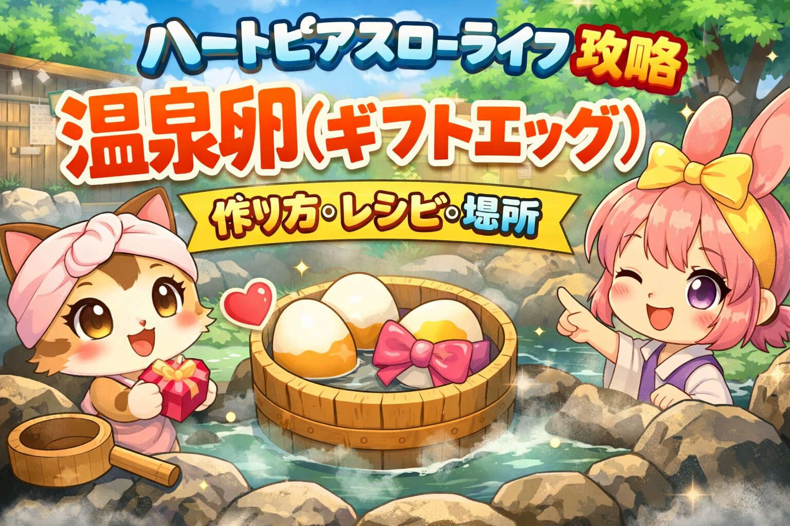 【ハートピアスローライフ攻略】温泉卵(ギフトエッグ)の作り方・レシピ・場所の総まとめ
