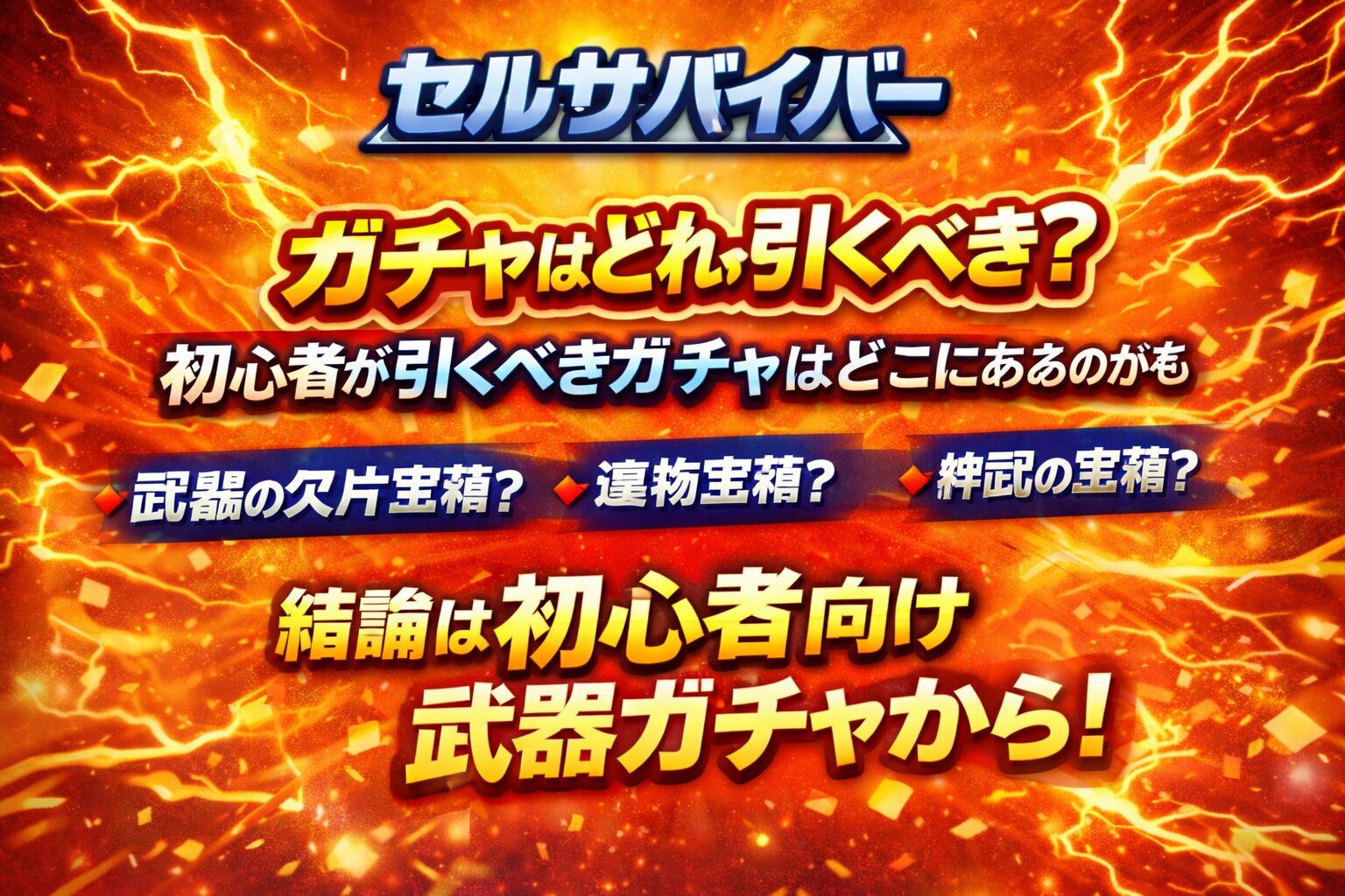 セルサバイバーのガチャは、初心者ならまず「武器の欠片宝箱」を引くべきです。